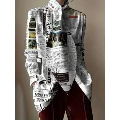 [New Fashion Shirt] 2024 New Long Sleeve Women's Fashion Letter Printed Tie Design Shirt Casual Office Shirt Top