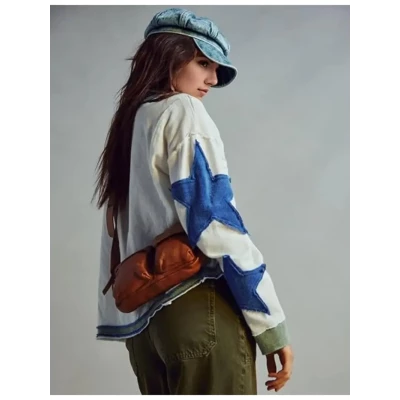 Women Oversized Shirts Lightweight Long Sleeve Crewneck Star Pullover Sweatshirt Hoodies 2024 Fall Clothes
